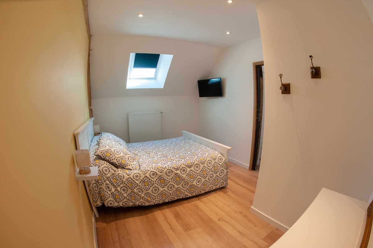 - Une première chambre, avec un lit de 140*190cm, un téléviseur, un lit parapluie et une table à langer