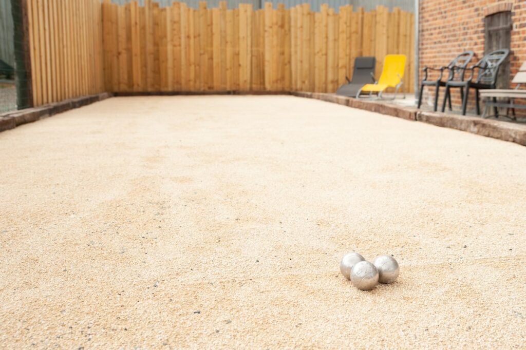 - 3 espaces de vie : une terrasse de 60m² avec un barbecue gaz, 2 bains de soleil et salon de jardin, un jardin privatif, un terrain de boule.