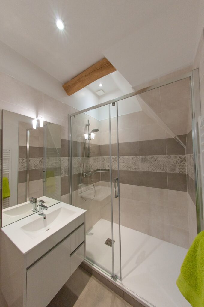 - 2 salles de bain supplémentaires composées chacune d’une grande douche à l’italienne, d’un sèche serviette, d’un sèche-cheveux